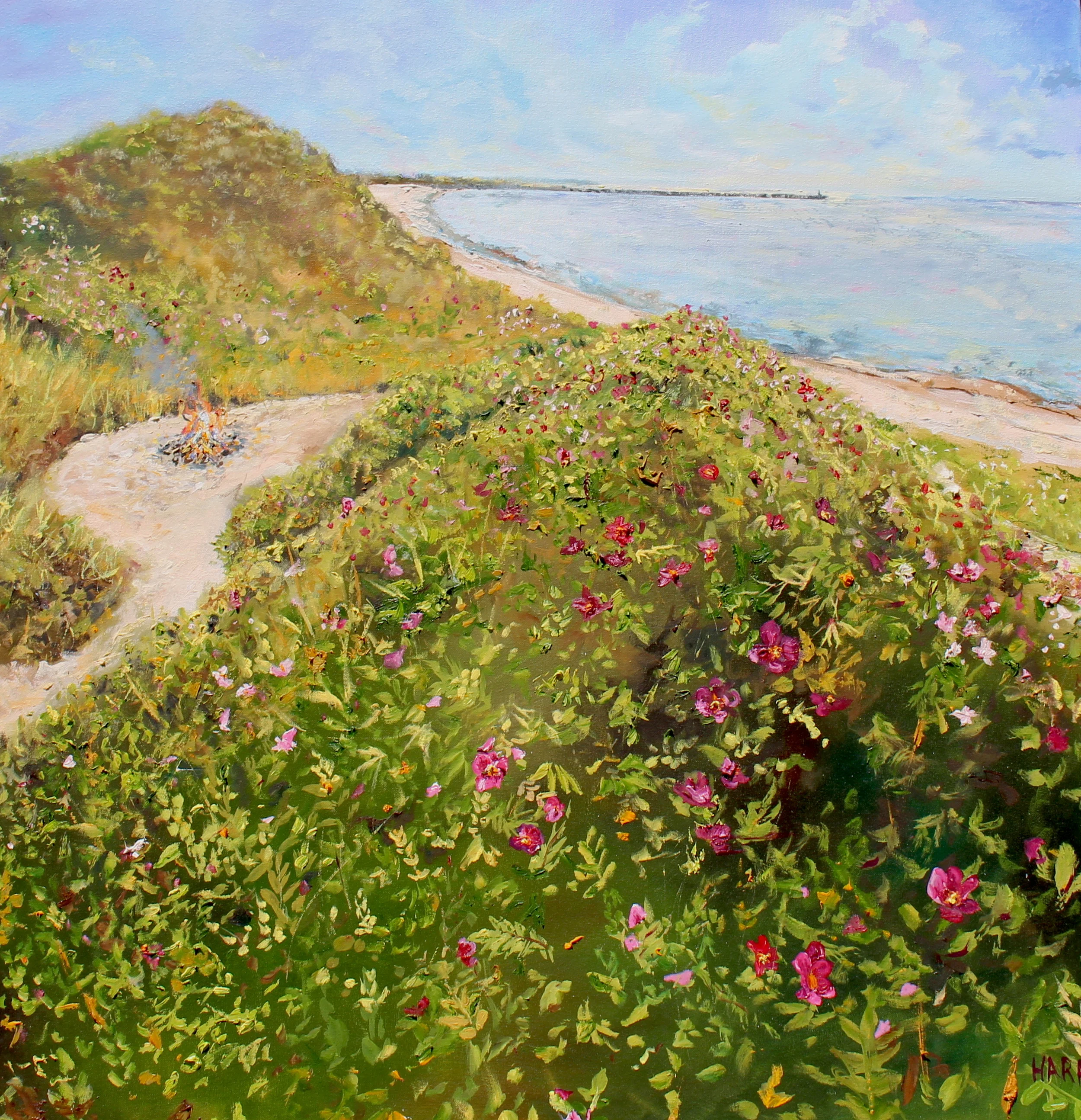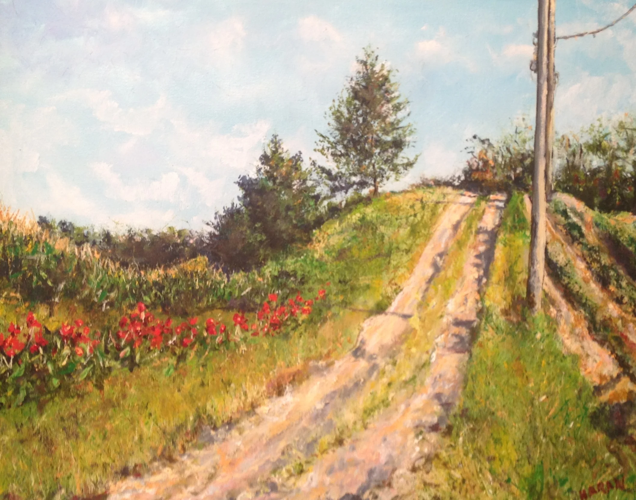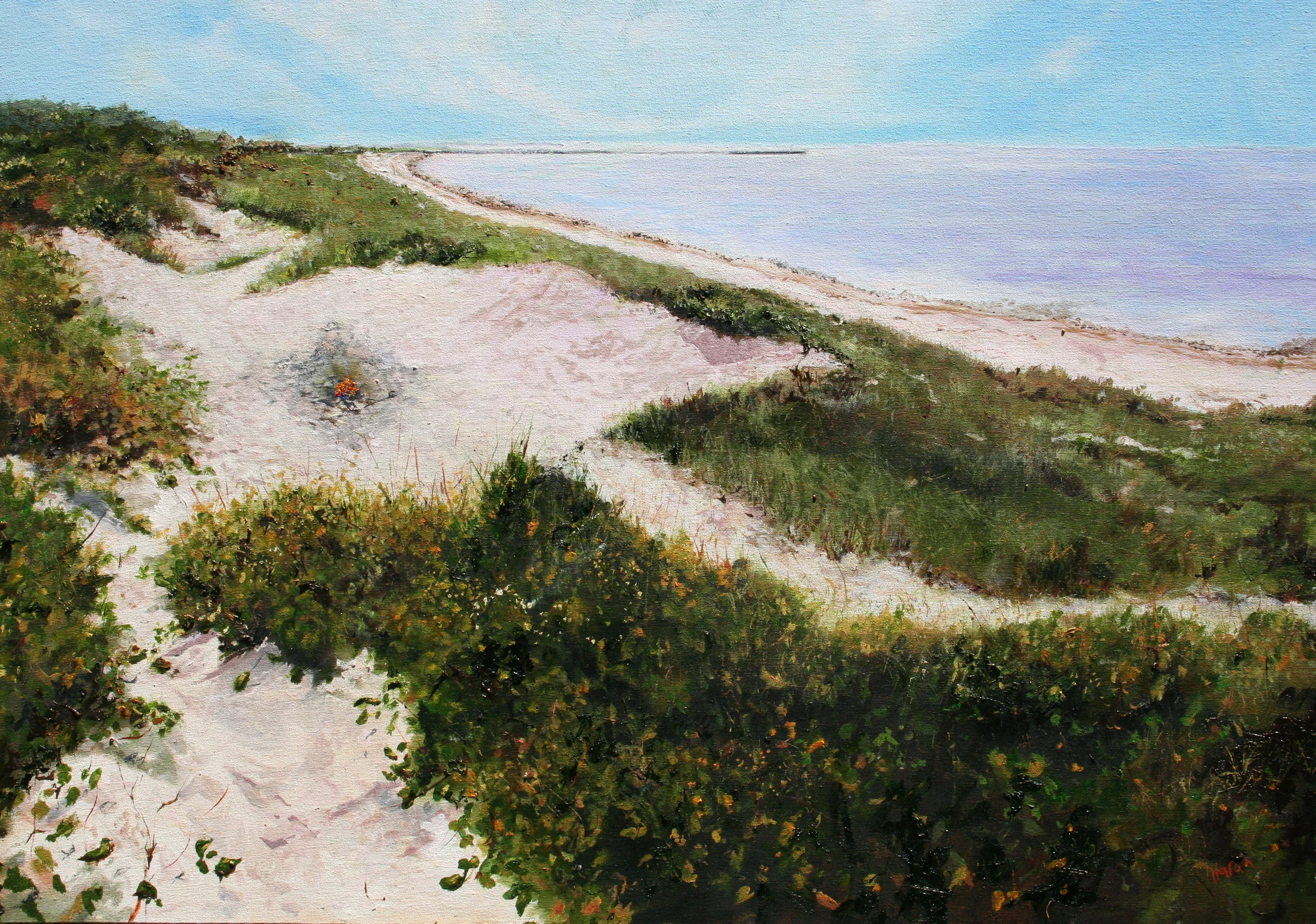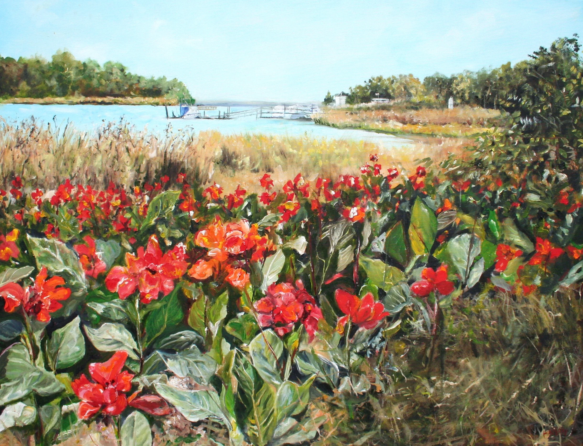 Cherry Trees, Fifth Street Greenport This painting depicts the cherry trees that line fifth street in Greenport. The Fifth street Beach that overlooks shelter Island is in the background.